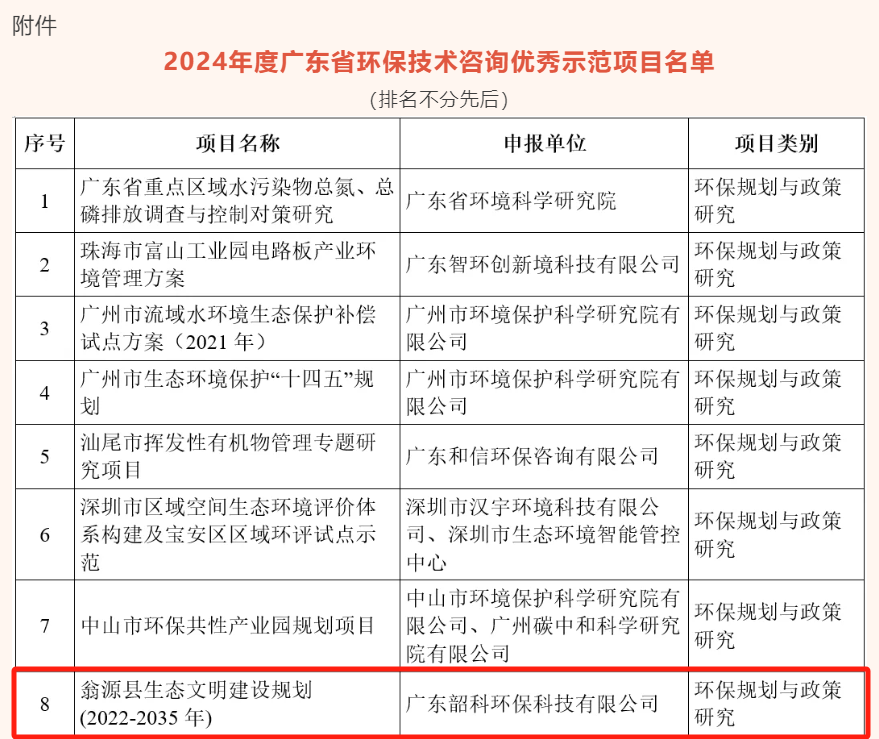 這一年我們齊心協(xié)力,勤練內(nèi)功,專業(yè)知識(shí)愈發(fā)扎實(shí),業(yè)務(wù)技能大幅增進(jìn),既有團(tuán)隊(duì)協(xié)作的默契,又有個(gè)人的成長的突破,更有收獲成功喜悅。我司編制的《翁源縣生態(tài)文明建設(shè)規(guī)劃(2022-2035年)》、《新豐產(chǎn)業(yè)轉(zhuǎn)移工業(yè)園規(guī)劃環(huán)境影響評(píng)價(jià)》、以及《廣東旭鑫新能源科技有限公司年產(chǎn)650萬只蓄電池項(xiàng)目環(huán)境影響評(píng)價(jià)》等3個(gè)項(xiàng)目被評(píng)為2024年度廣東省環(huán)保技術(shù)咨詢優(yōu)秀示范項(xiàng)目。
